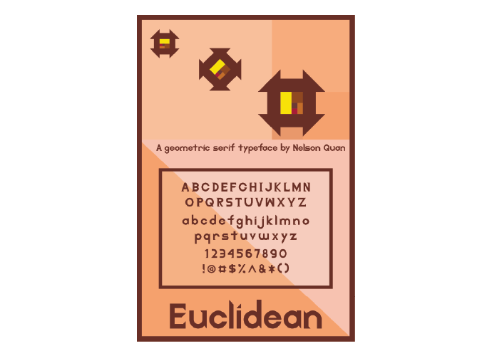 A geometric serif font that uses right triangles, circles, and squares. Named after the mathematical system attributed to the Greek mathematician Euclid.